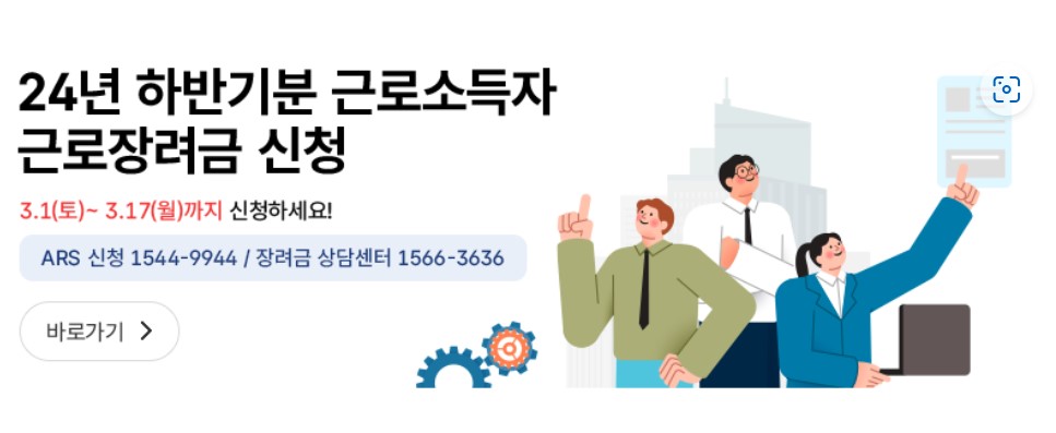 • 국세청 홈택스 누리집 온라인 신청: 홈택스 접속 후 '근로장려금 반기 신청' 메뉴에서 신청