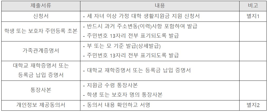 - 세 자녀 이상 가정의(미혼인) 자녀가 2025년 대학에 재학(신입생 포함) 중인 자.