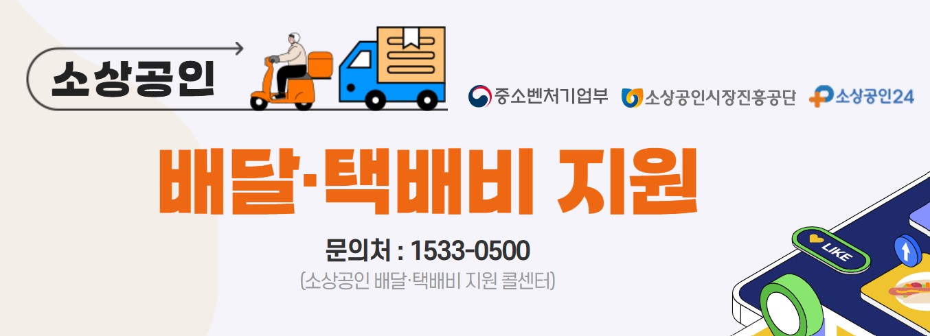 소상공인을 위한 배달, 택배비 지원사업은 중소벤처기업부에서 시행 중입니다.