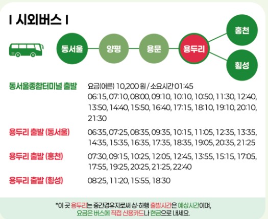 - 대중교통: 청운면행 버스 이용 후 도보 이동이 유리합니다.