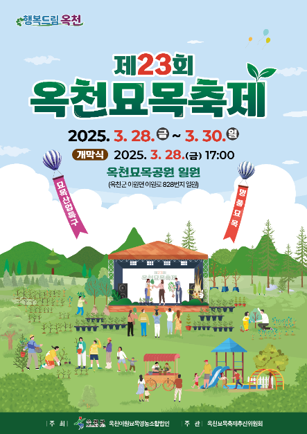 제23회 옥천 묘목 축제는 봄의 생명력이 가득한 3월에 개최되어, 방문객들에게 자연의 아름다움과 묘목의 가치를 전달할 예정입니다. 많은 관심과 참여 부탁드립니다.