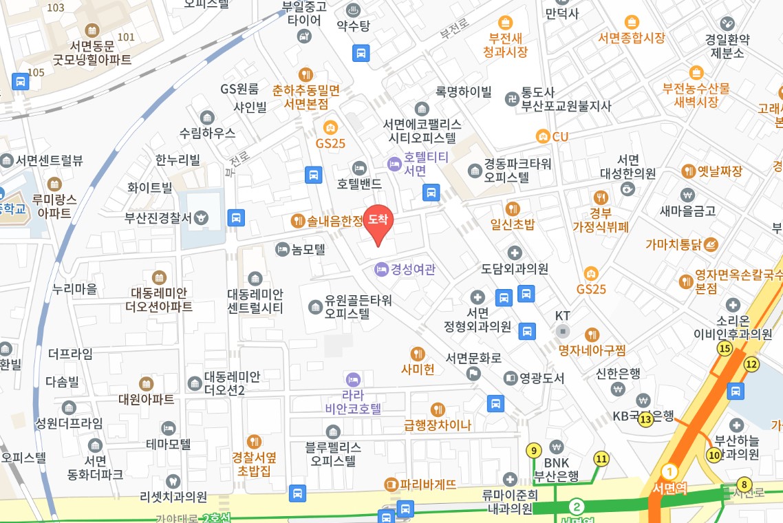 대중교통 이용시 – 지하철 1호선 서면역 7번 출구에서 도보 약 5분