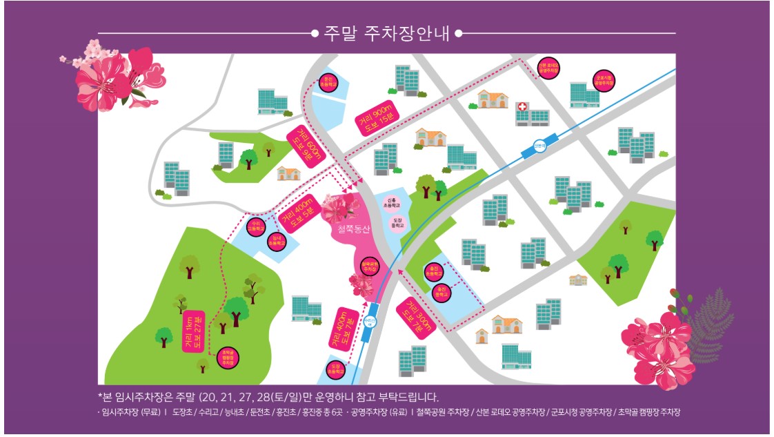 가족, 친구, 연인들과 '군포 철쭉 축제'에 오셔서 행복 가득한 핑크빛 철쭉 동산에서 봄 추억을 가득 담아 보시기 바랍니다.